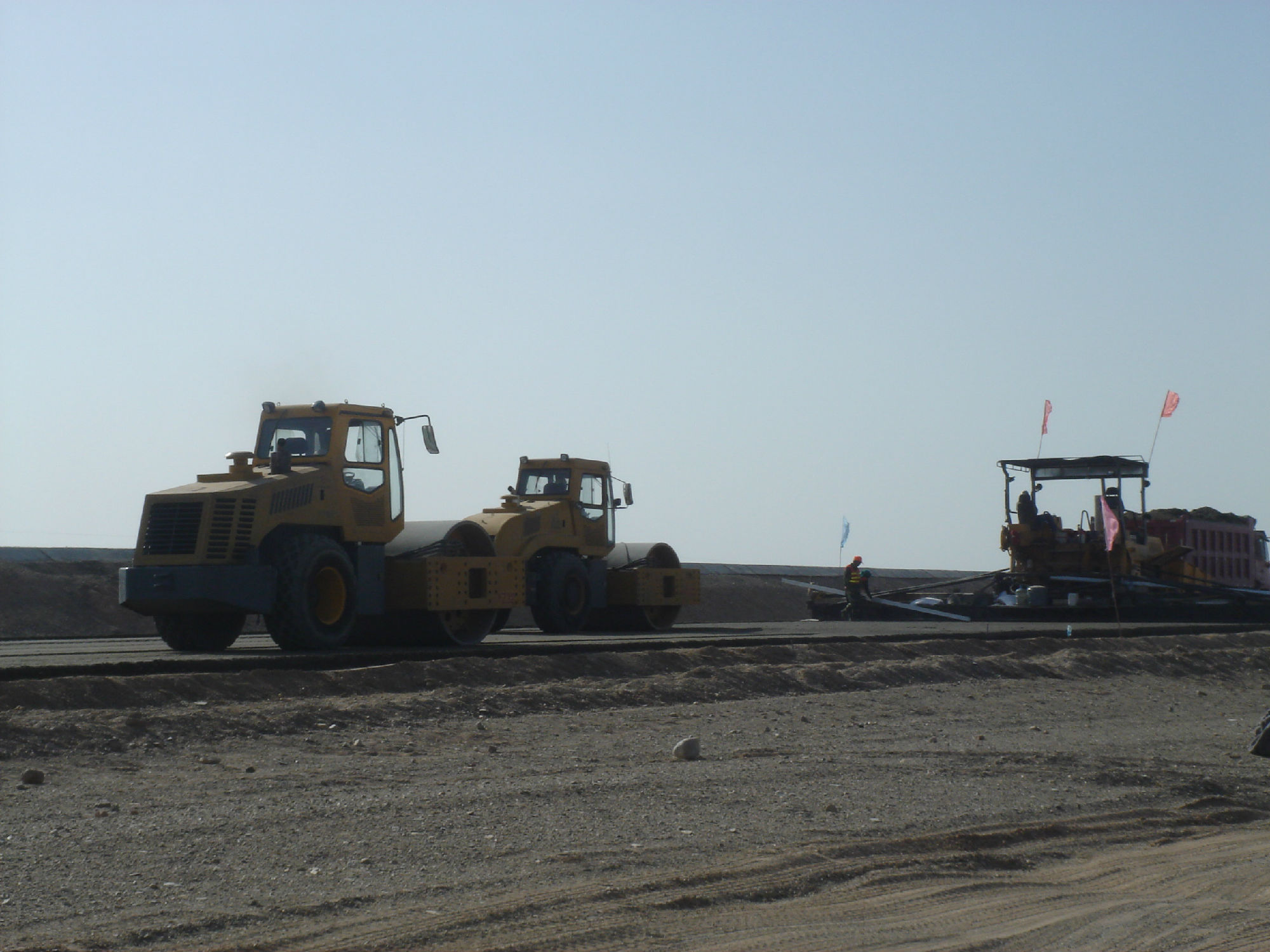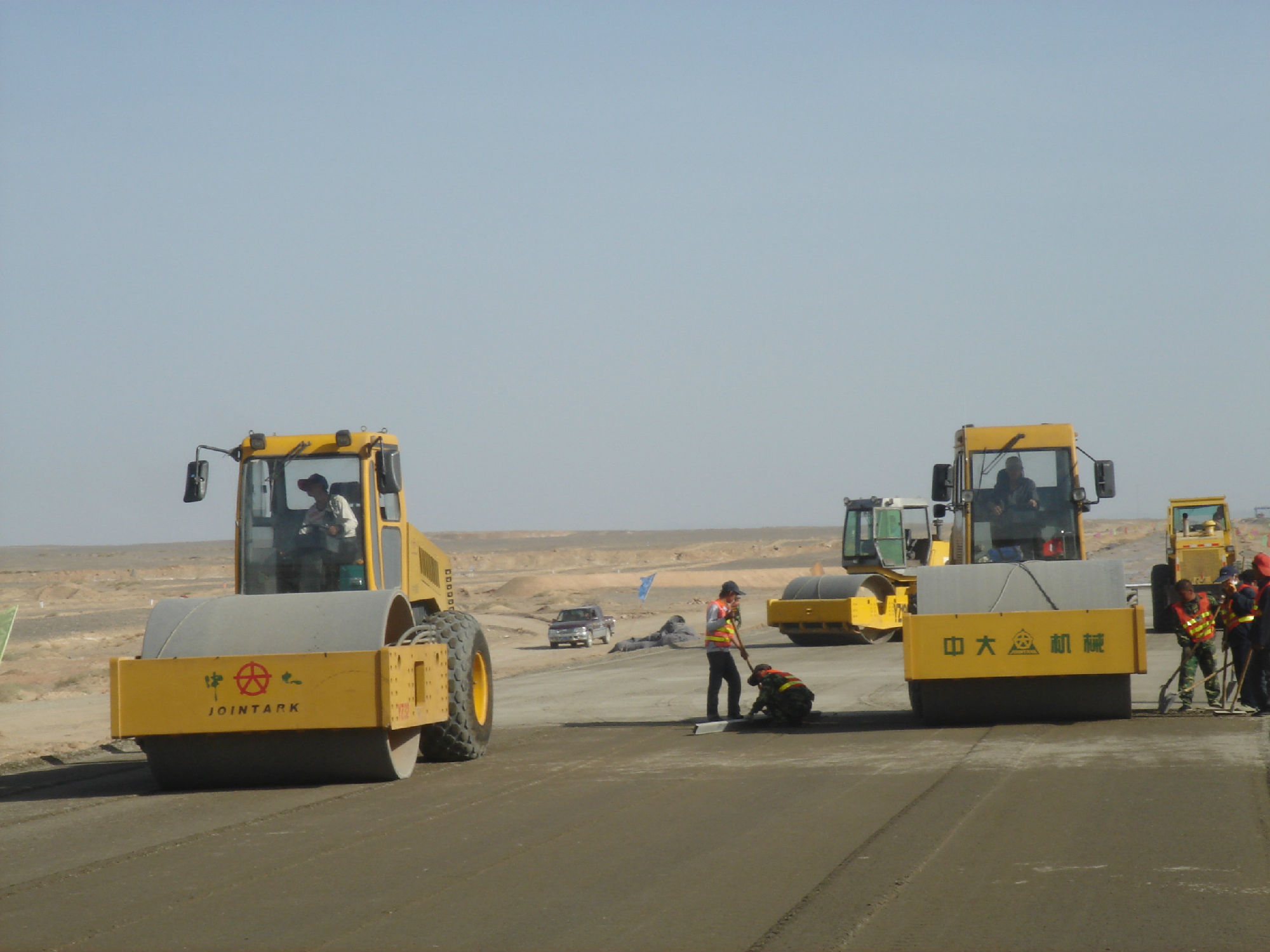 新疆星星峽至哈密高速工程,全線采用中大攤鋪與壓實(shí)全套設(shè)備,水穩(wěn)施工采用全幅度大厚度施工工藝,將原來(lái)的分層施工工藝創(chuàng)新為大厚度單層施工工藝(兩層并作一層施工),松鋪厚度達(dá)到53CM,僅碾壓三遍,平均壓實(shí)度達(dá)到101,平整度、壓實(shí)度和整體強(qiáng)度達(dá)到并超過(guò)高速公路施工規(guī)范要求,在不增加任何成本的前提下大大的提高了道路的施工質(zhì)量和施工進(jìn)度。