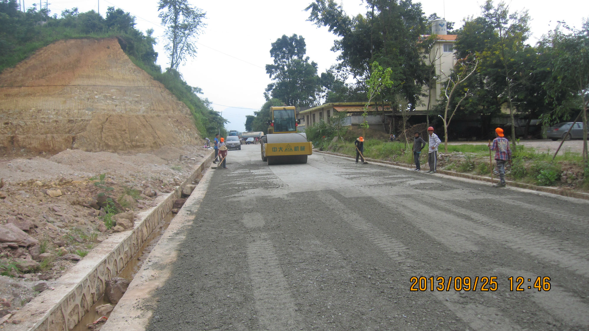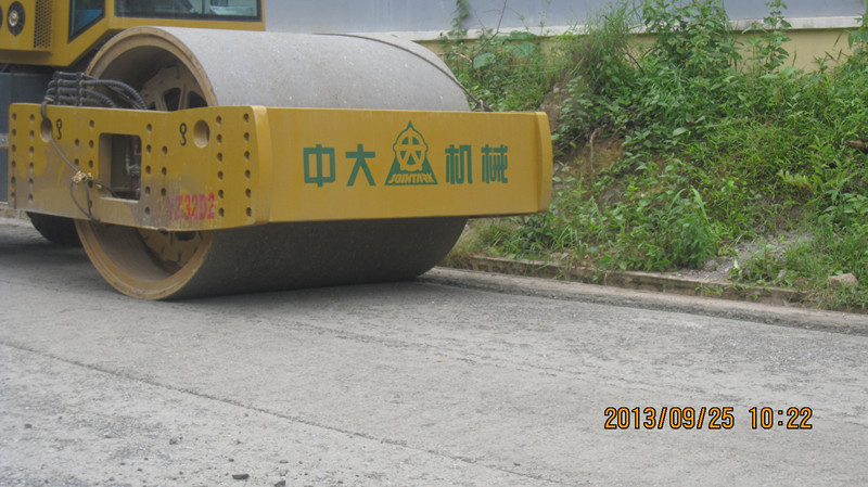 國(guó)道320云南德宏州芒瑞段改造工程,水穩(wěn)施工采用大厚度施工工藝,將原來(lái)的分層施工工藝創(chuàng)新為大厚度單層施工工藝(兩層并作一層施工),采用YZ32超重噸位超大激振力全液壓自行式單鋼輪振動(dòng)壓路機(jī)進(jìn)行碾壓,松鋪厚度達(dá)到53CM,僅碾壓三遍,壓實(shí)度達(dá)到103,平整度、壓實(shí)度和整體強(qiáng)度達(dá)到并超過(guò)高速公路施工規(guī)范要求,在不增加任何成本的前提下大大的提高了道路的施工質(zhì)量和施工進(jìn)度。
