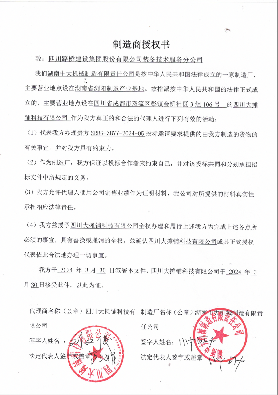 招投標-制造商授權書