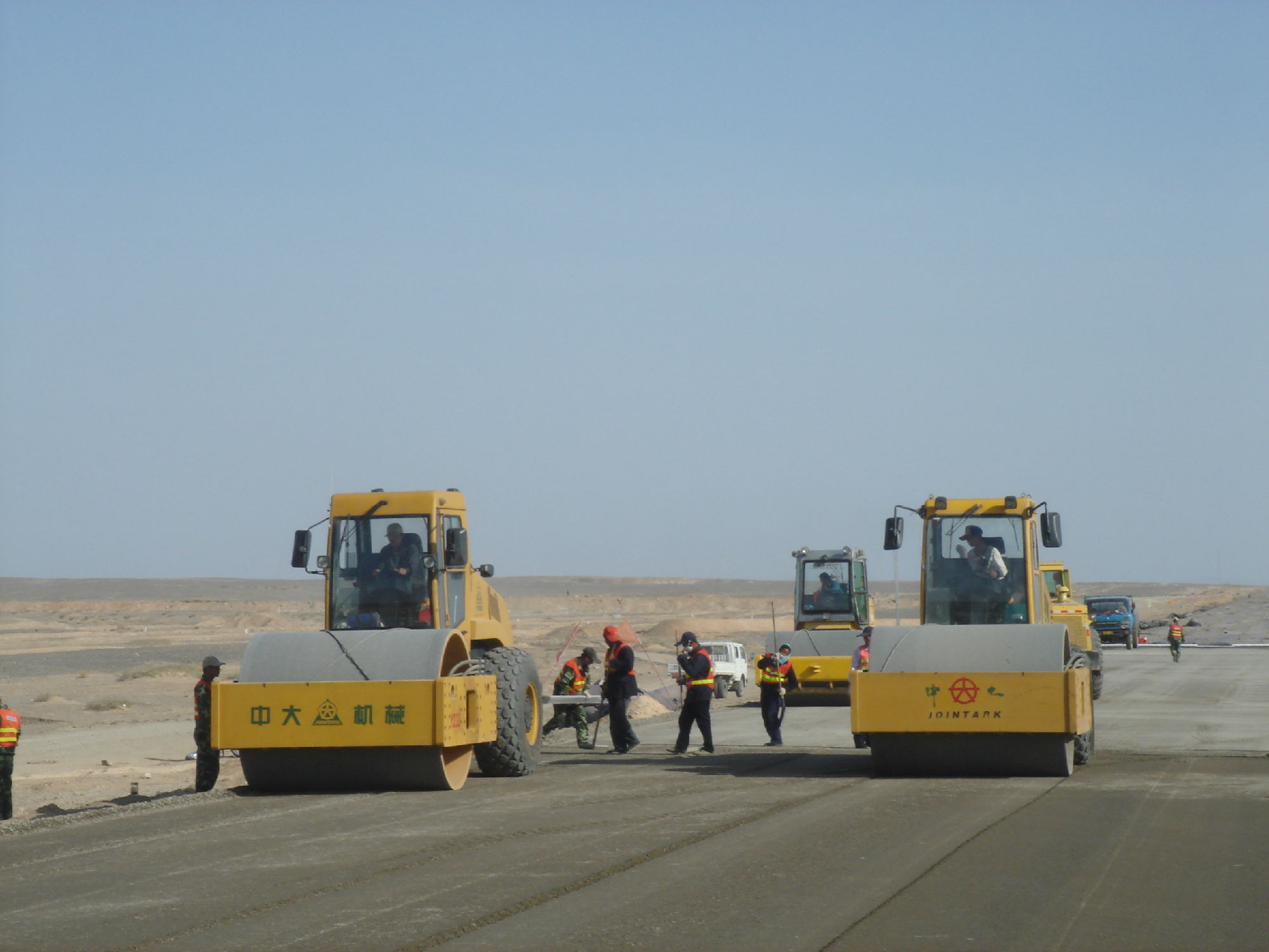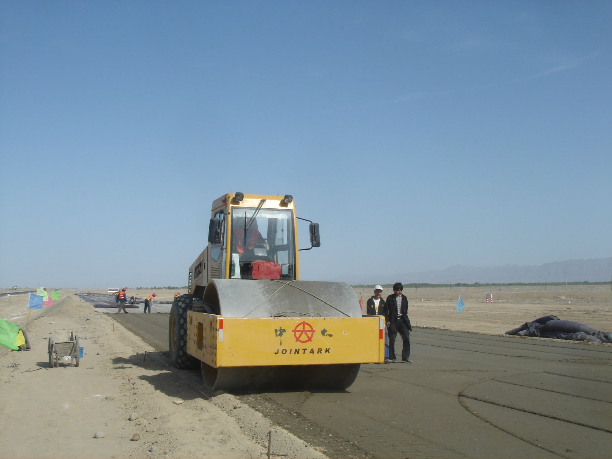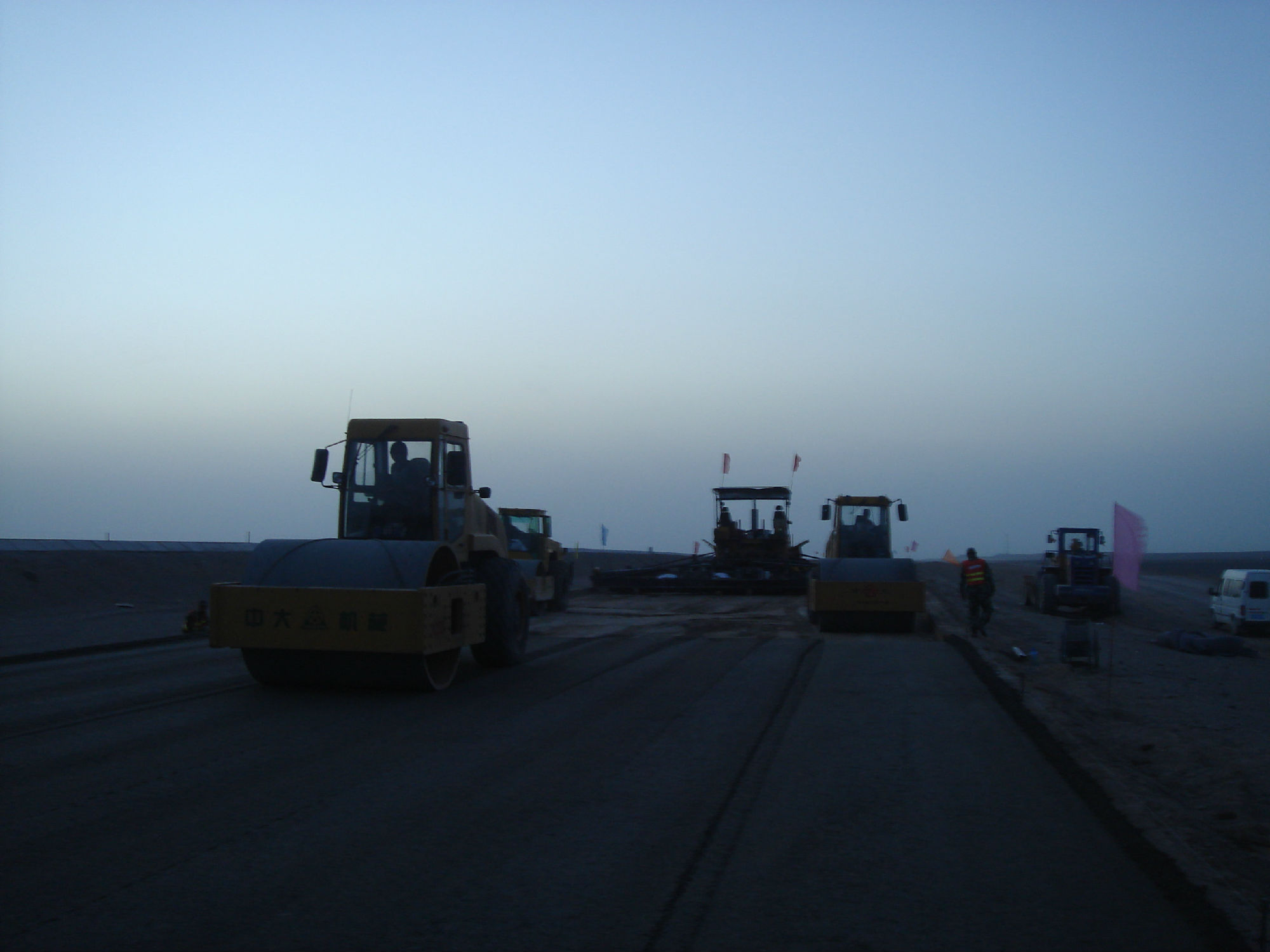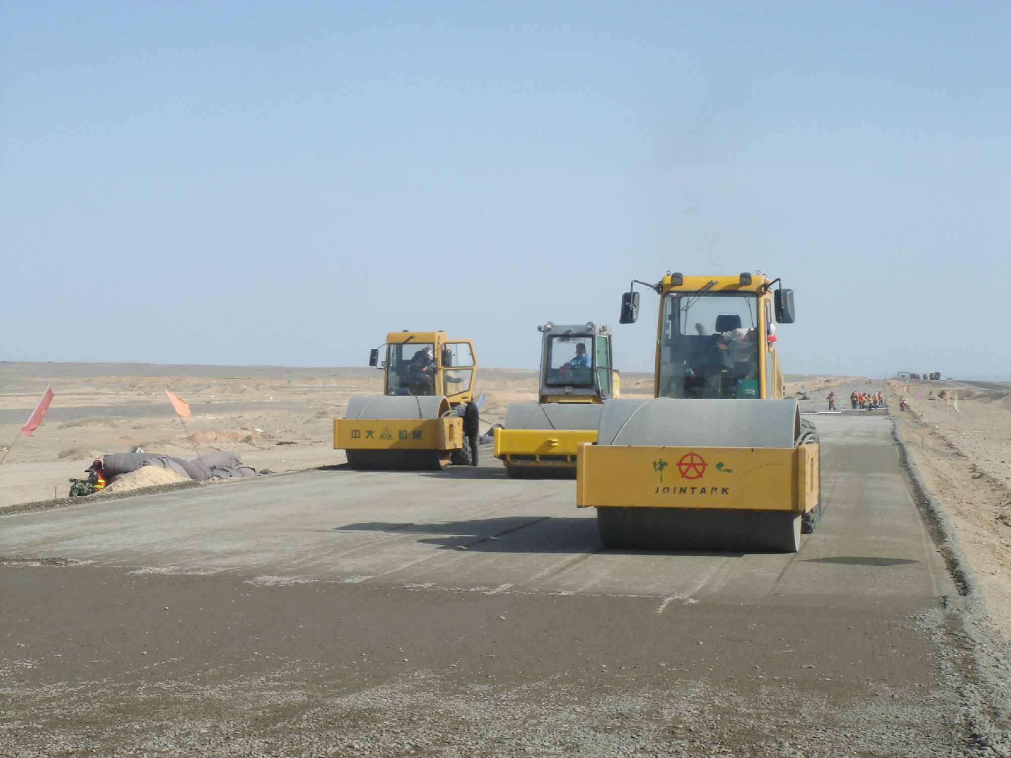 新疆星星峽至哈密高速工程,全線采用中大攤鋪與壓實全套設備,水穩施工采用全幅度大厚度施工工藝,將原來的分層施工工藝創新為大厚度單層施工工藝(兩層并作一層施工),松鋪厚度達到53CM,僅碾壓三遍,平均壓實度達到101,平整度、壓實度和整體強度達到并超過高速公路施工規范要求,在不增加任何成本的前提下大大的提高了道路的施工質量和施工進度。